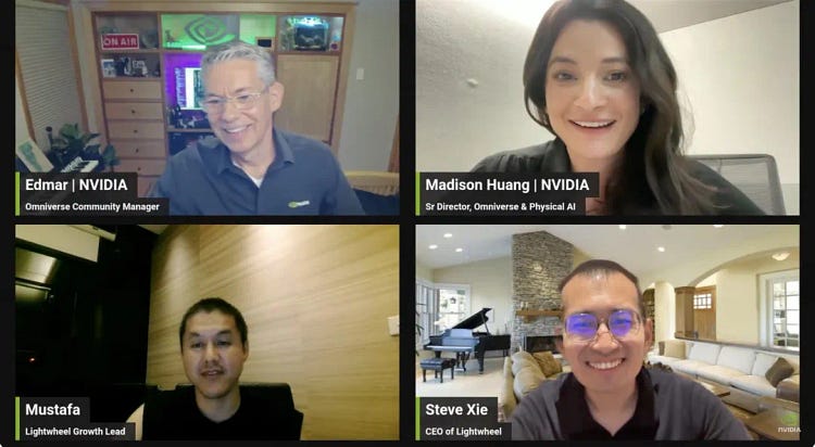 而在这次的直播中,谢晨提到他们一直在做仿真资产和合成数据,希望让 AI 能在虚拟世界里完成原本得在现实中做的训练和测试。他说,光轮的使命是“让仿真成为现实创新的起点”,也就是把数字世界变成一个可以提前验证想法的实验场。