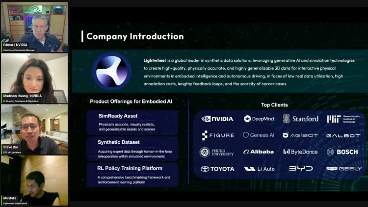 在这场节目中,Madison 对话光轮智能,与这家初创企业畅谈仿真与具身智能的未来,甚至坦言:“英伟达需要合成数据工厂,而光轮刚好出现。”