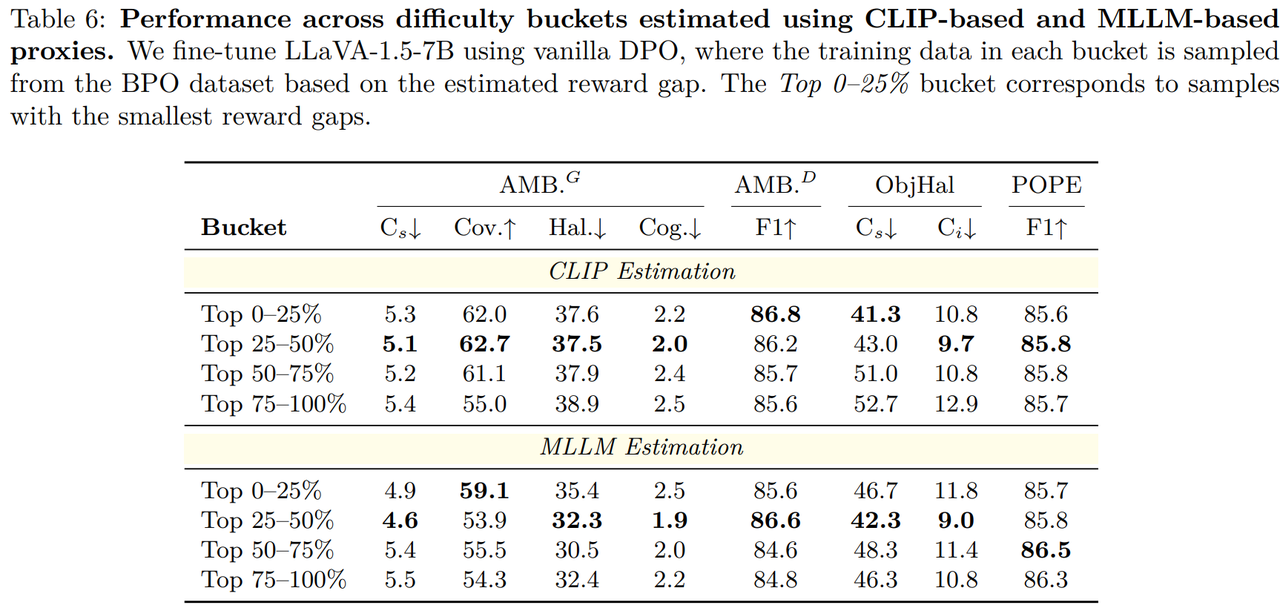 整体来看,这项研究具有重要的学术意义和实际应用价值。首先,从理论层面看,研究团队通过对训练动态、奖励变化轨迹以及样本难度分布的系统分析,揭示了一个此前在多模态偏好优化领域未被充分重视的问题:传统 DPO 虽然在形式上实现了偏好对的优化,但在训练过程中存在明显的难度偏置,模型更倾向于学习简单、差异明显的样本,而对语义复杂、区分细微、贴近真实应用情境的困难样本学习不足。